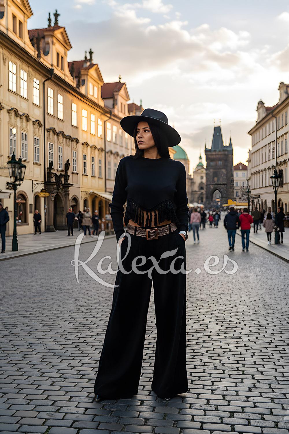 Ihr weiter Palazzo-Schnitt sorgt für Bewegung und eine entspannte Atmosphäre, ideal für einen persönlichen Boho-Chic-Look.