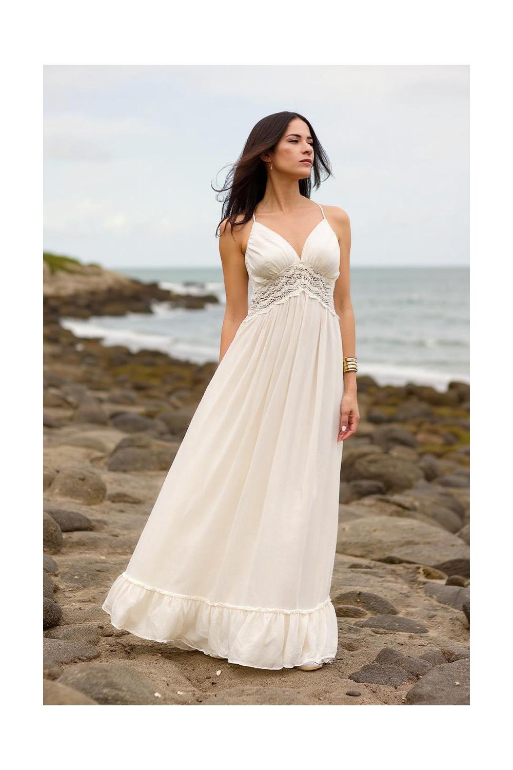 Romantisches Boho-Kleid mit verführerischem Touch, verziert mit filigraner Spitze an der Taille und am Rücken, mit tiefem Ausschnitt und verstellbarem Kordelverschluss. Der fließende Rock und der mit Rüschen versehene Saum sorgen für einen spektakulären Look. Das Kleid ist gefüttert und hat einen elastischen Einsatz auf der Rückseite der Taille. Mit Liebe gefertigt aus 65% Baumwolle, 35% Polyester.