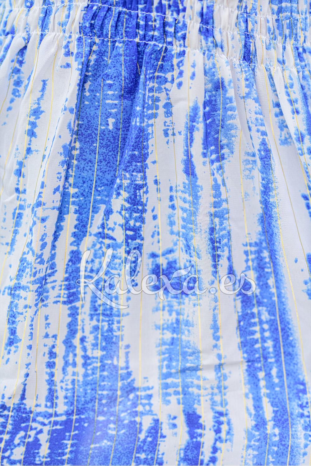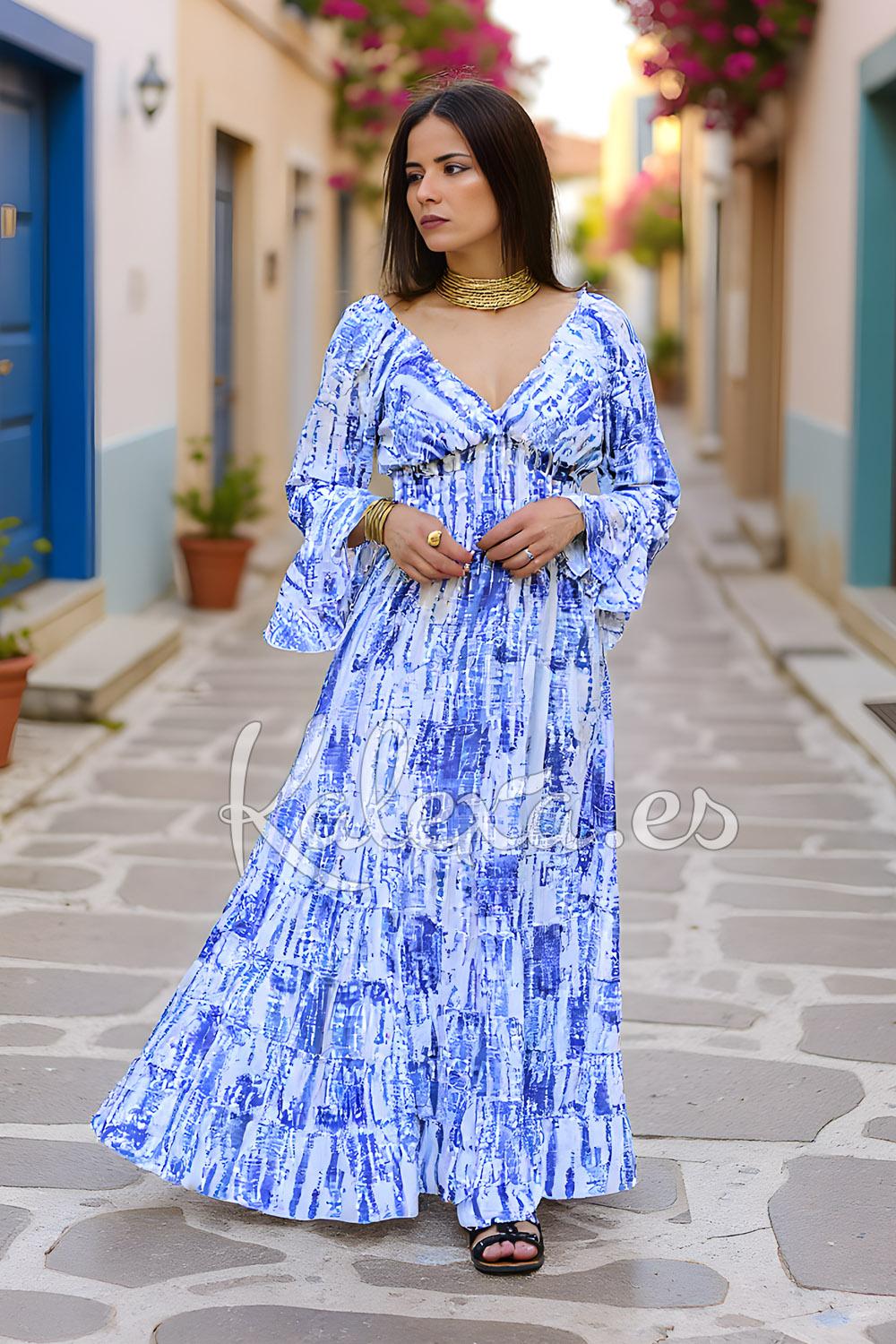 Dieses Boho Chic-Kleid bezaubert mit seinem gemalten Stil und subtilen glänzenden Fäden, die ihm einen Hauch von Licht und Eleganz verleihen. Der elastische Bienenwabenbund passt sich sanft an, während der V-förmige Wickelausschnitt und die verstellbaren Ärmel eine bequeme und feminine Passform ermöglichen.
