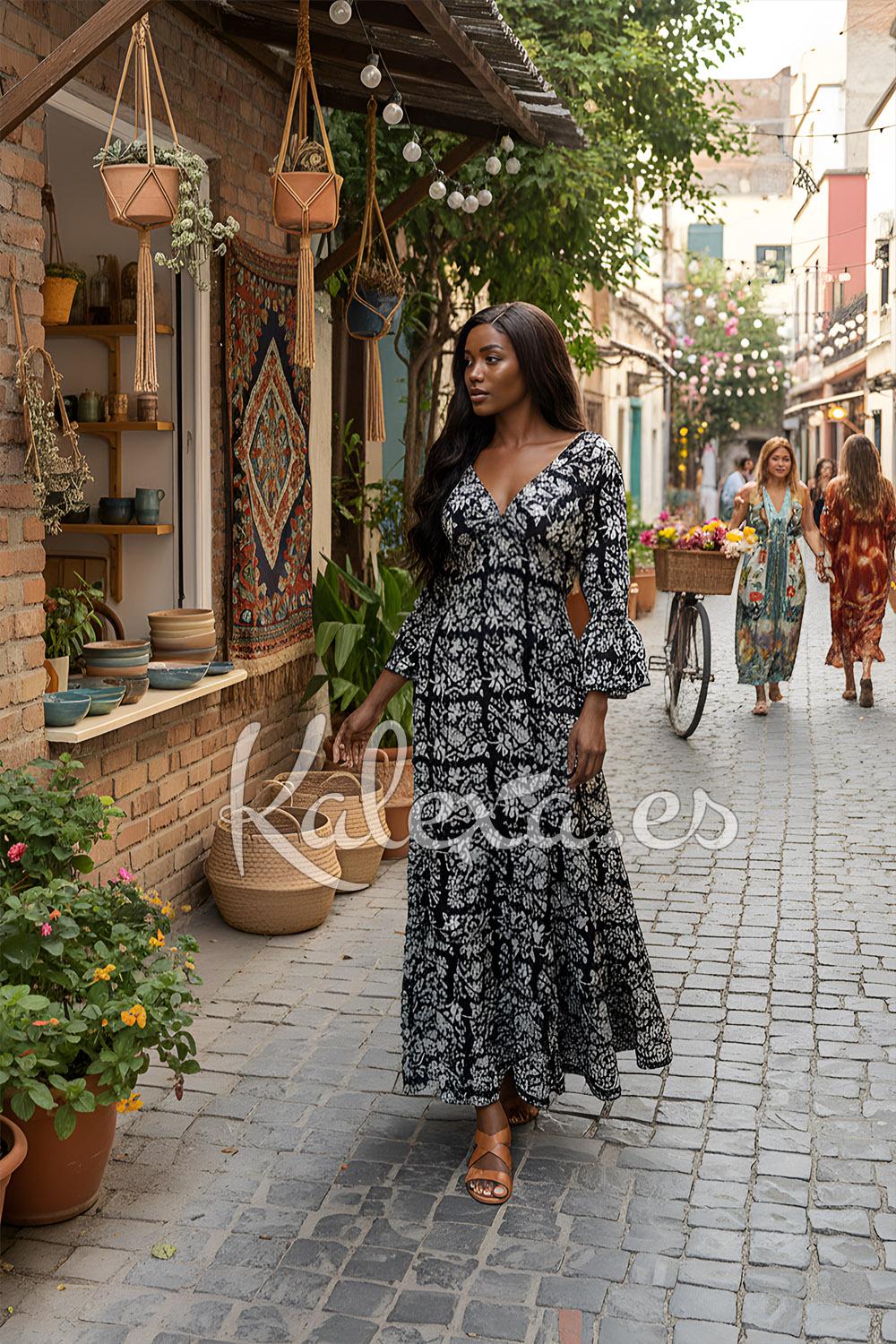 Elegant und zeitlos, dieses Kleid hat ein Muster mit einer raffinierten und vielseitigen Note. Sein elastischer Taillenbund, der V-förmige Wickelausschnitt und die verstellbaren Ärmel machen es zu einem unverzichtbaren, schicken und vorteilhaften Stück.