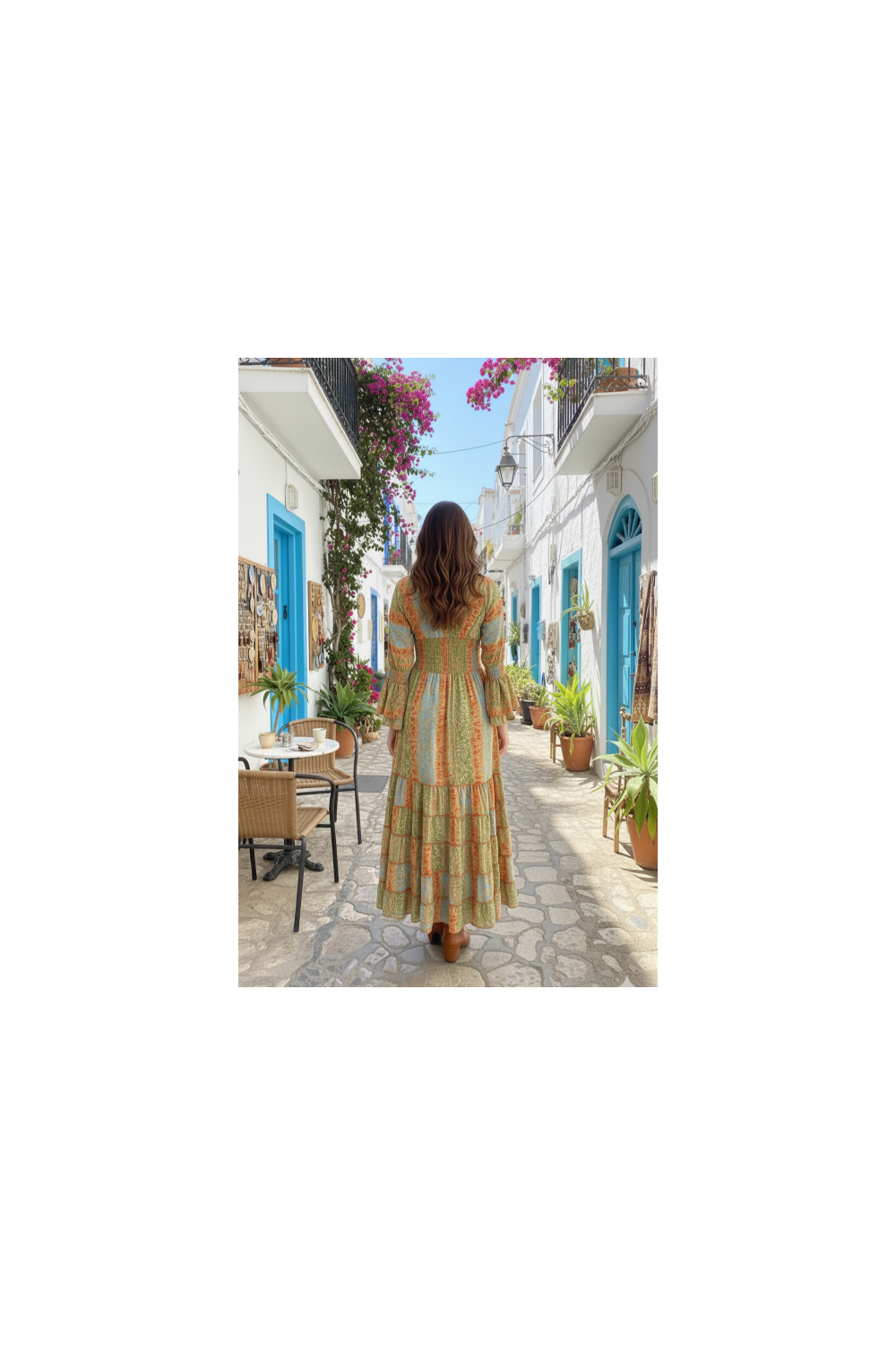 Ein frisches und vielseitiges Kleidungsstück, perfekt für lässige Boho-Looks tagsüber oder für besondere Anlässe mit einem natürlichen und anspruchsvollen Touch. Der leichte Stoff sorgt für einen fließenden und angenehmen Fall.
