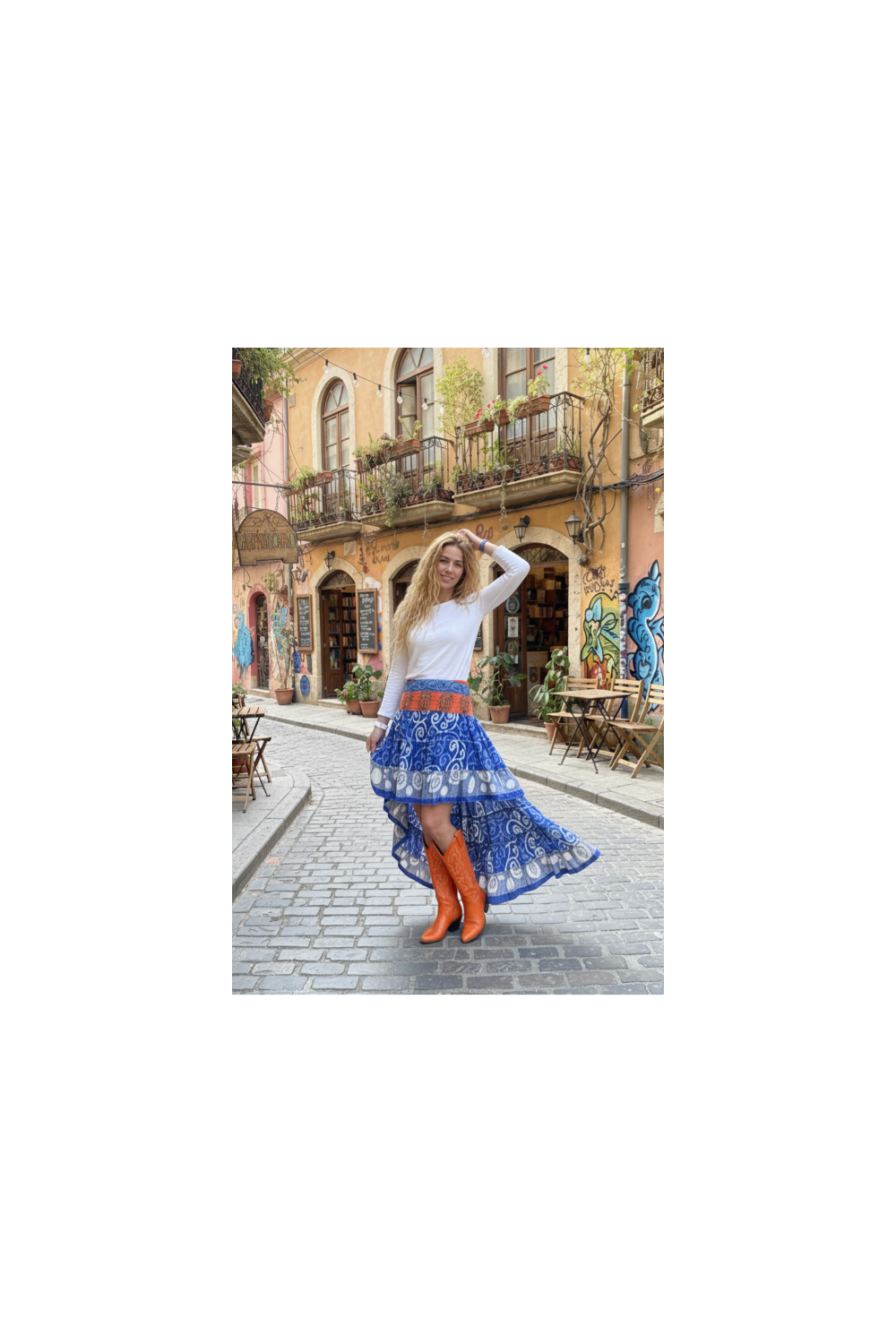 Der elastische Bund sorgt für bequemen Sitz und der asymmetrische Schnitt verleiht Bewegung und Boho-Stil. Ideal zum Kombinieren mit Basic-Tops oder fließenden Blusen.