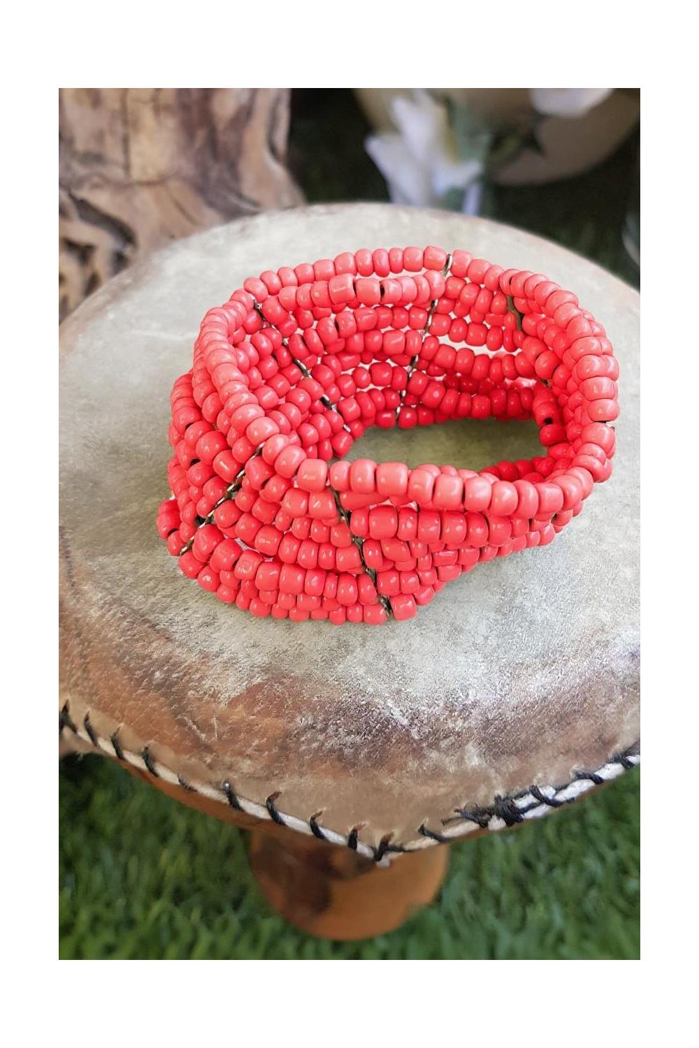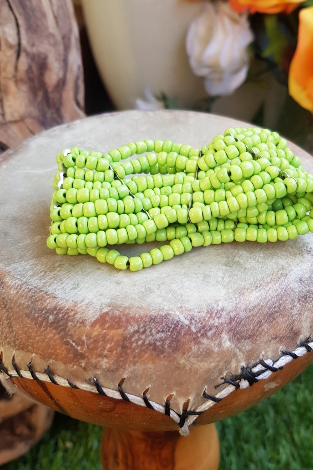 Pulsera elástica de cuentas. HEcha en Bali. Comercio justo.