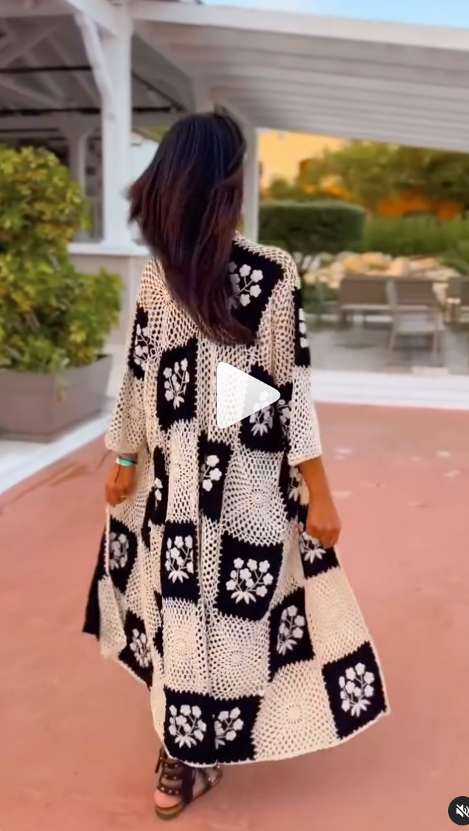 Esta es nuestra exclusiva chaqueta de crochet en blanco roto, combinada con un tejido negro bordado, lleva un diseño ligero y suave lo que hace que sea fácil de combinar con cualquier prenda, ya sea casual o más formal. El contraste de colores neutros aporta un toque de elegancia atemporal, mientras que los bordados hechos a mano le brindan un acabado único y artístico. Es si duda una obra de arte, con una caída ligera y elegante. Hecha a mano con amor y 100% acrílico.