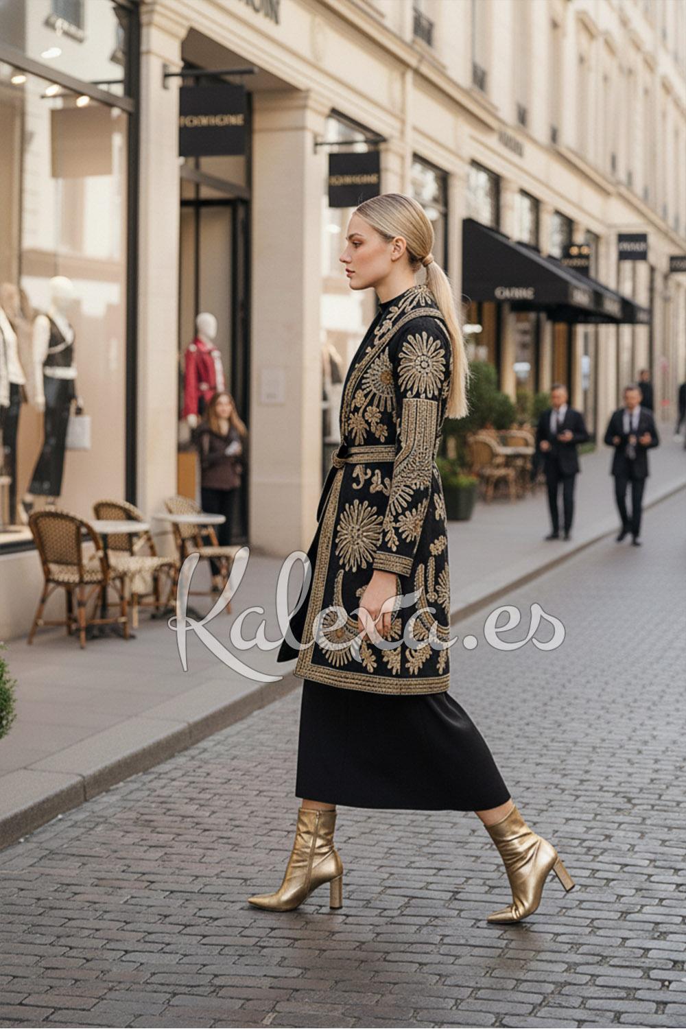 Abrigo boho chic bordado en dorado