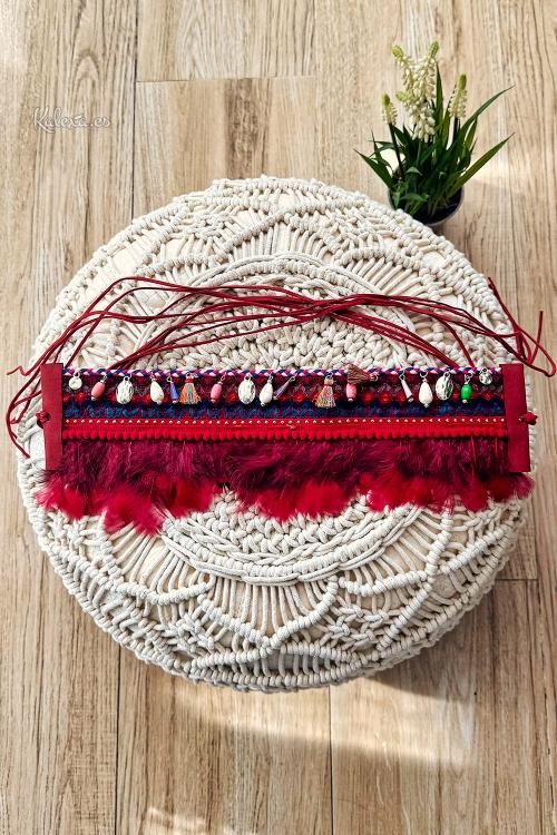 Cinturón bohemio de plumas y detalles bordados con pompones y piedras colgantes, lleva tirantes para atar por detrás. Una pieza ideal para volver bohemia cualquiera de tus prendas. Todo un mar de sensaciones. La parte delantera mide unos 40 cm.