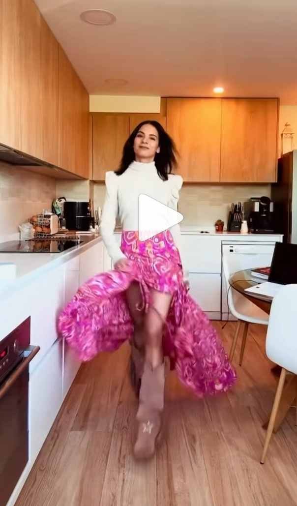 Falda boho chic asimétrica, lleva tiras ajustables para regular el largo de la parte delantera. Su vuelo es impresionante y su caída espectacular. Lleva cintur eslástica en la parte trasera. Sin duda una prenda original y con mucho encanto. Hecha en la India con aor y 100% seda fría.