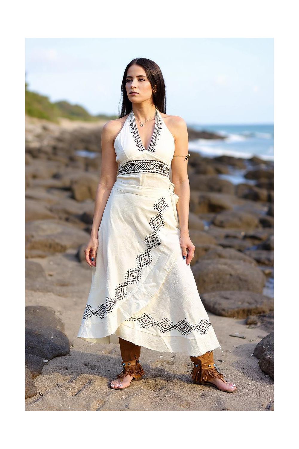 Falda étnica cruzada con diseño artesanal