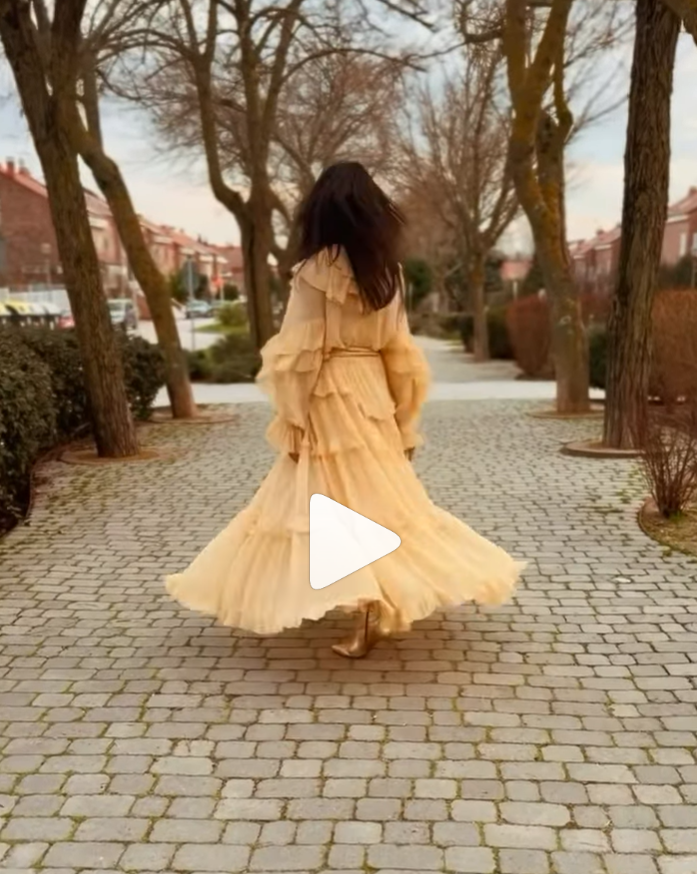 Vestido Boho chic de la exclusiva firma parisina Diamond for Eden, el diseño, la caída,  y el tejido van en perfecta armonía como en todas sus creaciones.  El vestido es espectacular, tiene un cuello cerrado con botones y clic, el cual que se puede abrir, y lleva volantes estilo victoriano a juego con las mangas y la falda. Tiene un vestido forro interior elástico. El tejido es suelto con una caída  elegante y espectácular. Las mangas llevan volantes con una caída preciosa. LLeva un cinturón trenzadado que se puede colocar en varias posiciones. Simplemente una obra de arte este vestido, original y grandioso, con un majestuoso vuelo de casi 6 metros de tejido.  Una prenda que no deja a nadie indiferente. Diseñado en París y fabricado en la India con amor y 100% viscosa.