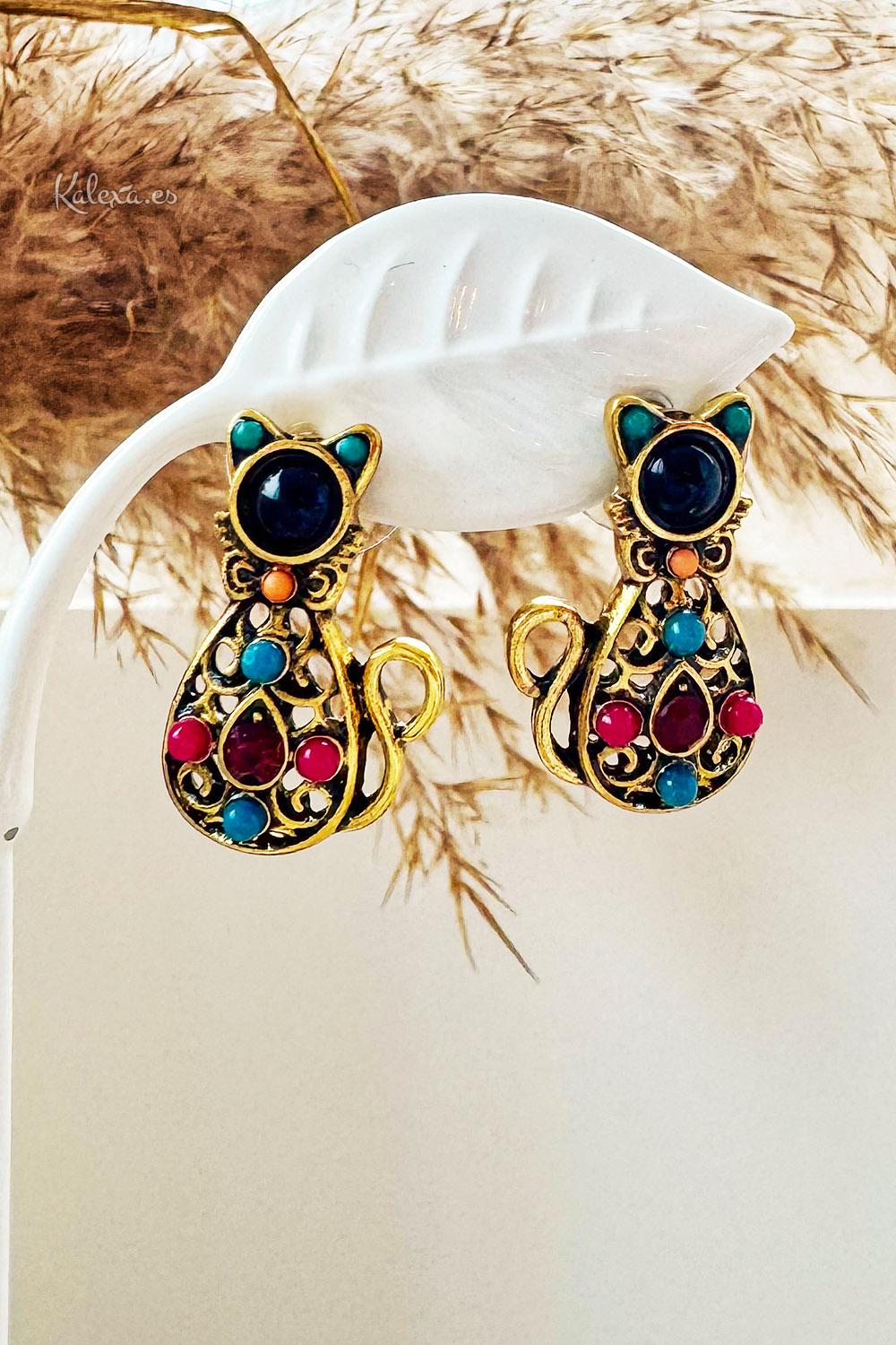 Pendientes boho de gatitos en metal con cuentas de colores. Monísimos.