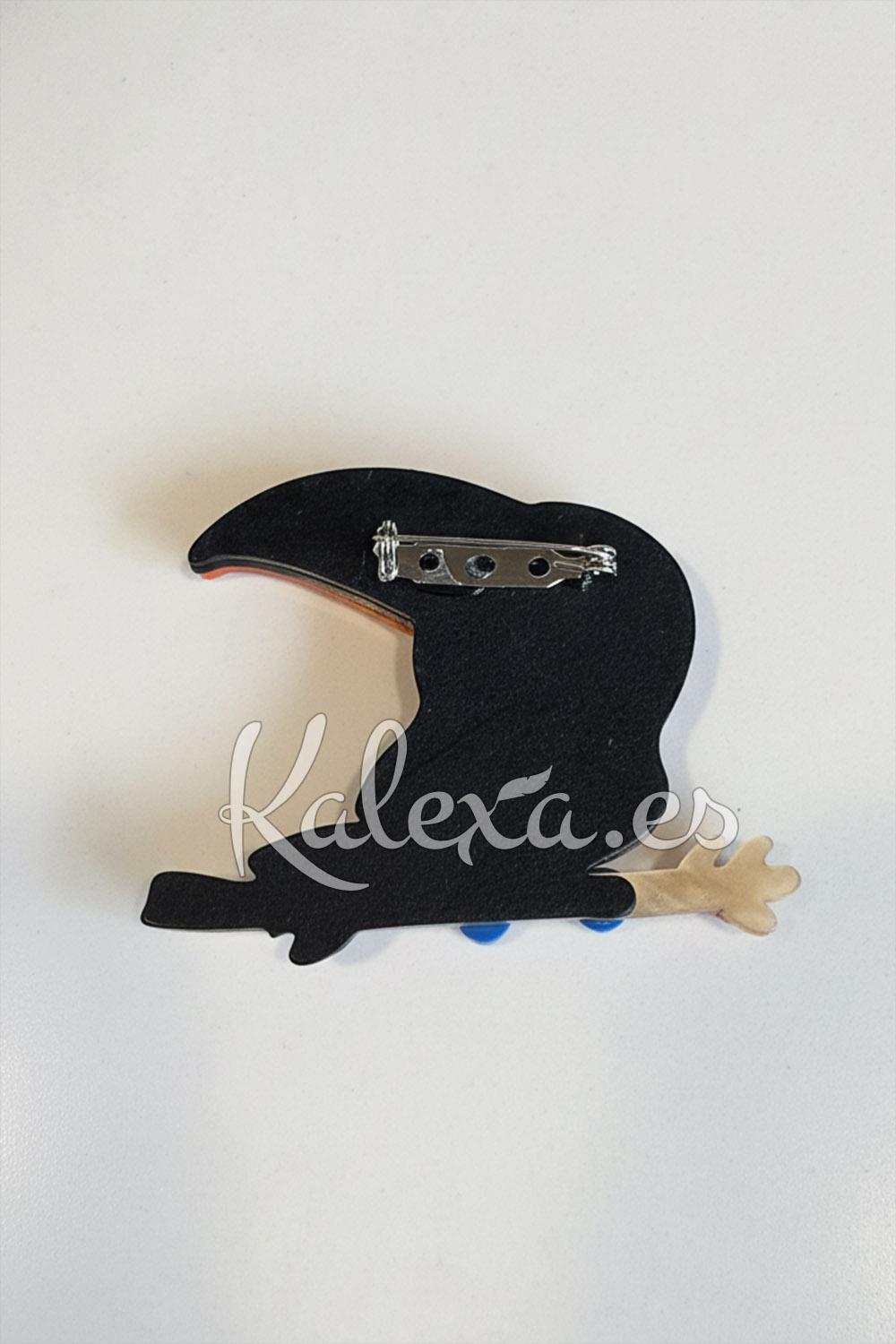 Broche artesanal con diseño de tucán, una pieza original, alegre y llena de color. Perfecto para aportar un toque divertido y exótico a tus chaquetas, bolsos o pañuelos.