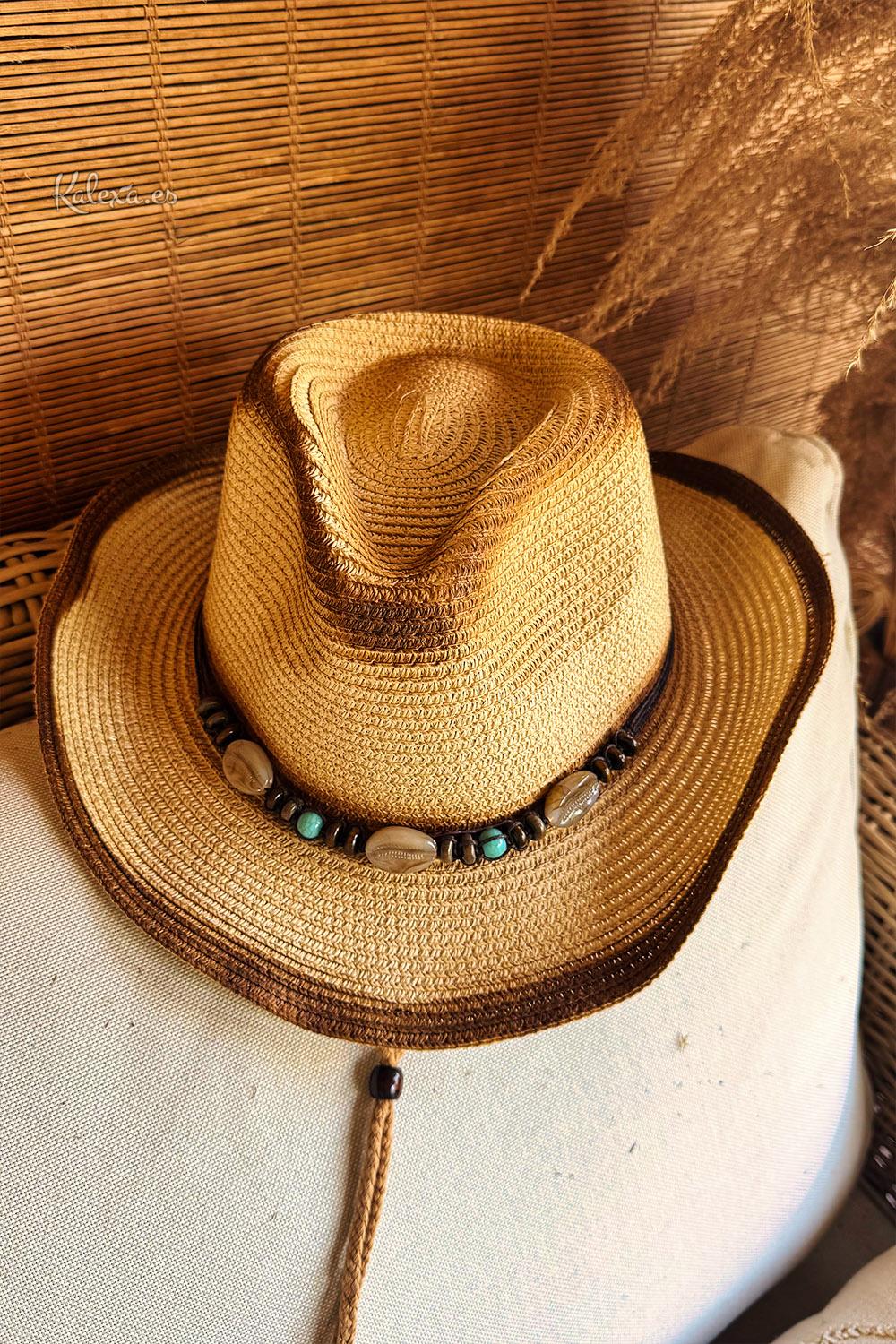 Sombrero boho vaquero degradado, con cordón ajustable y tiras internas para un ajuste perfecto. El complemento ideal para dar un toque boho chic a cualquier look.