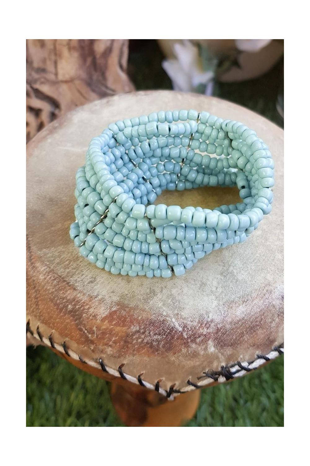 Pulsera elástica de cuentas. HEcha en Bali. Comercio justo.