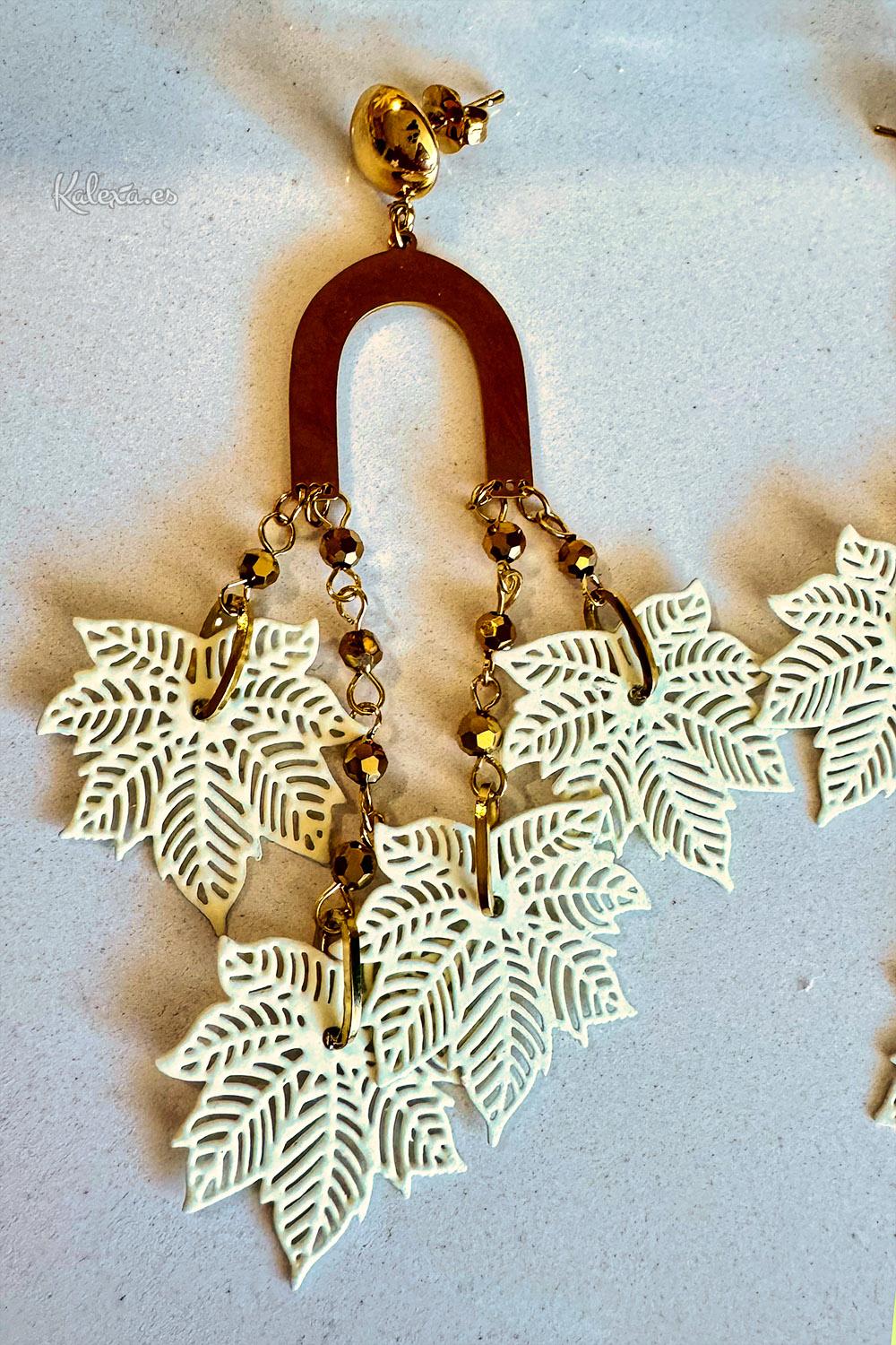 Design délicat avec des feuilles émaillées en blanc qui pendent subtilement d'une chaîne ornée de petites perles brillantes. Légères, aériennes et avec un charme naturel qui illumine votre style bohème.