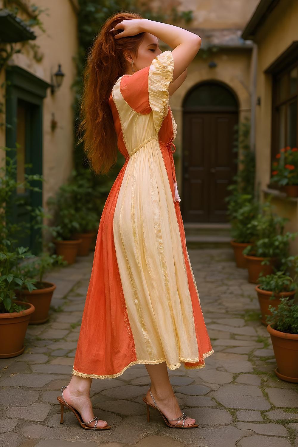 Cette robe bohème est un bijou d'élégance décontractée et de détails artisanaux. Son encolure en V et sa taille élastique épousent doucement la silhouette, tandis que les bretelles ajustables au décolleté permettent un ajustement parfait.