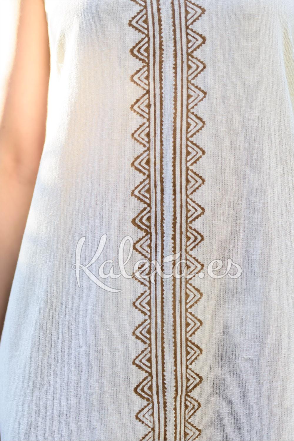 Questo vestito con stampa etnica e spalline regolabili è un capo leggero e dall'anima artigianale. Il suo design largo dona comfort e libertà di movimento, mentre il retro elasticizzato e le spalline regolabili consentono una vestibilità perfetta e favorevole.