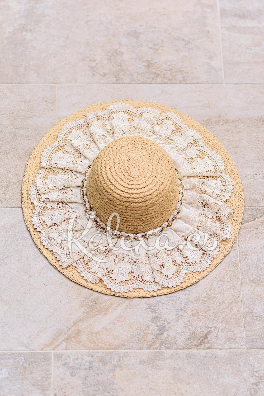Cappello boho a tesa larga con dettagli in pizzo all'uncinetto, con un tocco di dorato. Ha una chiusura regolabile con velcro all'interno per adattarsi. È originale e molto elegante. Realizzato con amore e al 100% in paglia.