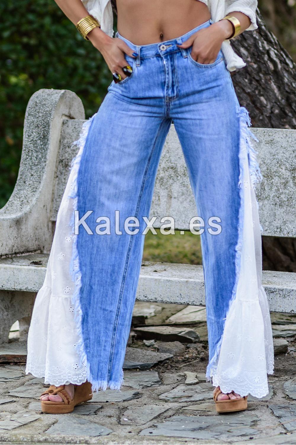 Pantaloni cowboy bohemio, porta i lati in un bellissimo tessuto.È originale, unica e avant-garde.Fatto con amore e 100% di cotone.