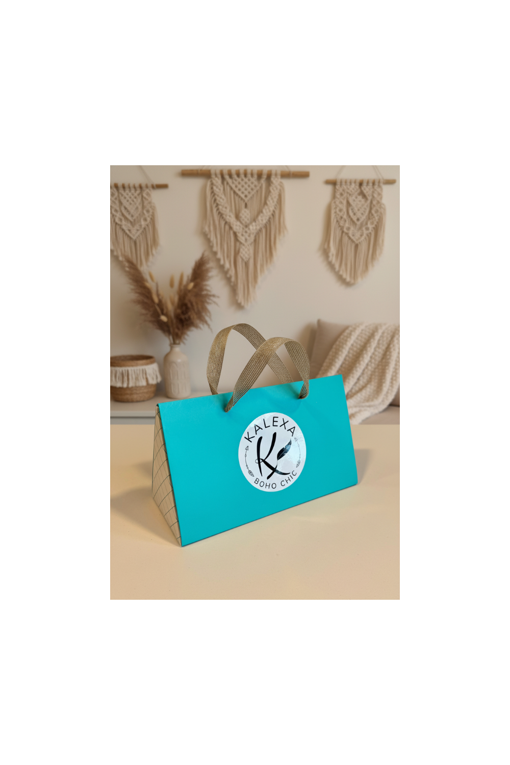 Licht, zacht en zeer veelzijdig, je kunt het dragen als sjaal om de nek, als accessoire voor je tas, als bandana of als chique aanvulling om elke look te verfraaien. Bovendien wordt het geleverd in een cadeaubox van Kalexa, ideaal om te verrassen met een speciale, originele en charmante attentie met een bohemien touch.