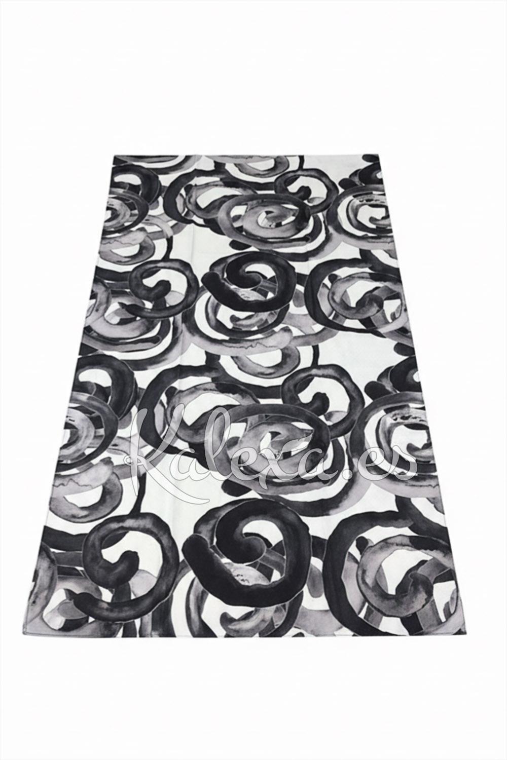 • De andere kant heeft een artistiek patroon in neutrale tinten met spiralen, ideaal voor meer minimalistische en verfijnde looks.