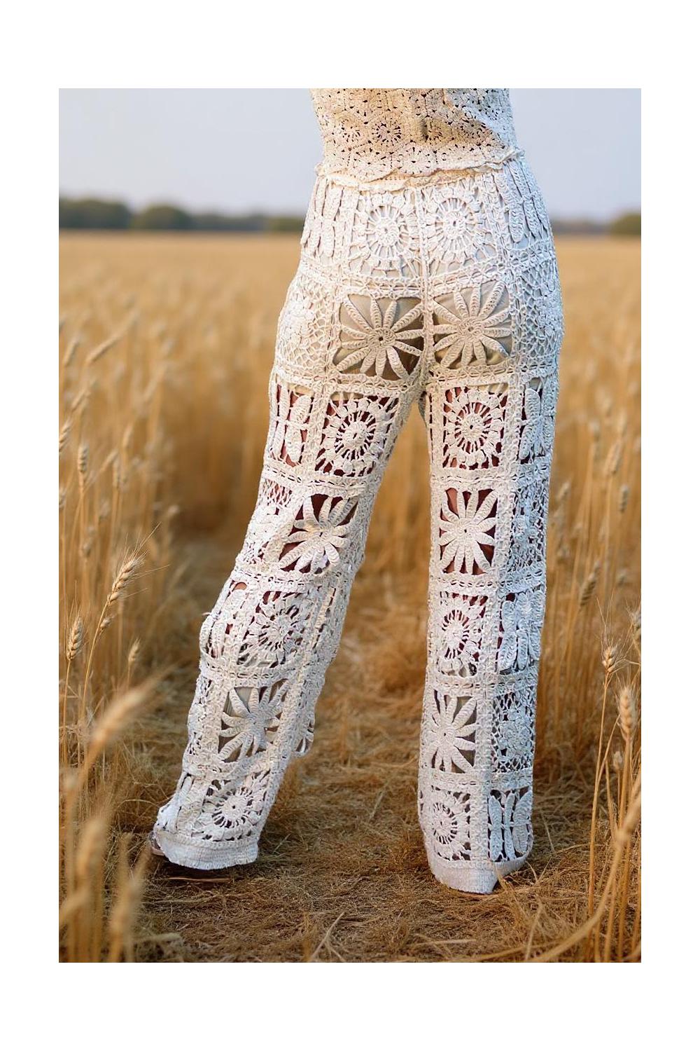 Een uniek kledingstuk dat textuur, comfort en stijl combineert. Het gehaakte kant is gewoonweg spectaculair, heeft een voering aan de binnenkant en een elastische taille. Perfect voor een authentieke bohemien look vol charme. Met liefde gemaakt van 65% katoen en 35% acryl. Valt klein, bekijk de afmetingen.