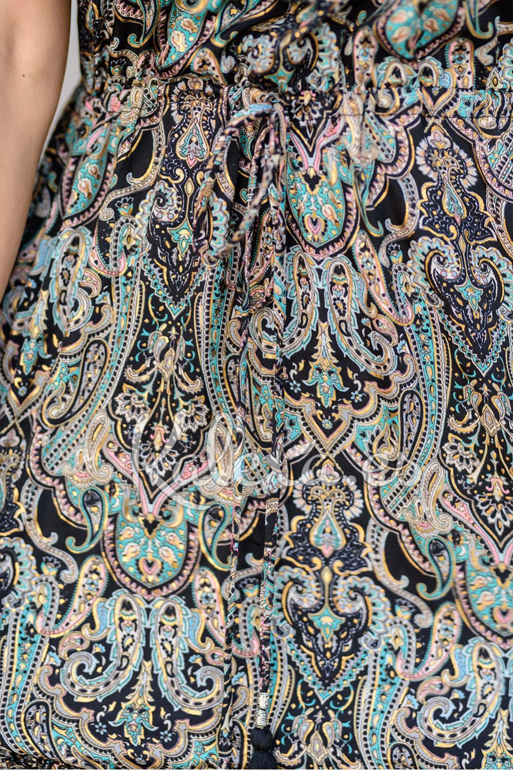 Romantisch en vrouwelijk, deze boho-jurk valt op door zijn ruches halslijn, verstelbare taille met trekkoord en vloeiende pasvorm. Flatterend en vrijgevochten, perfect voor zonnige dagen en betoverende bohemienachtige avonden. Voorzien van gouden details in het patroon. Met liefde gemaakt in India van 70% koud zijde, 30% viscose.