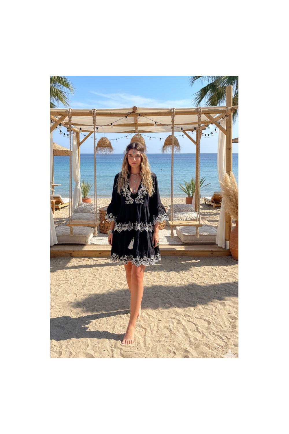 Zwarte geborduurde Boho jurk