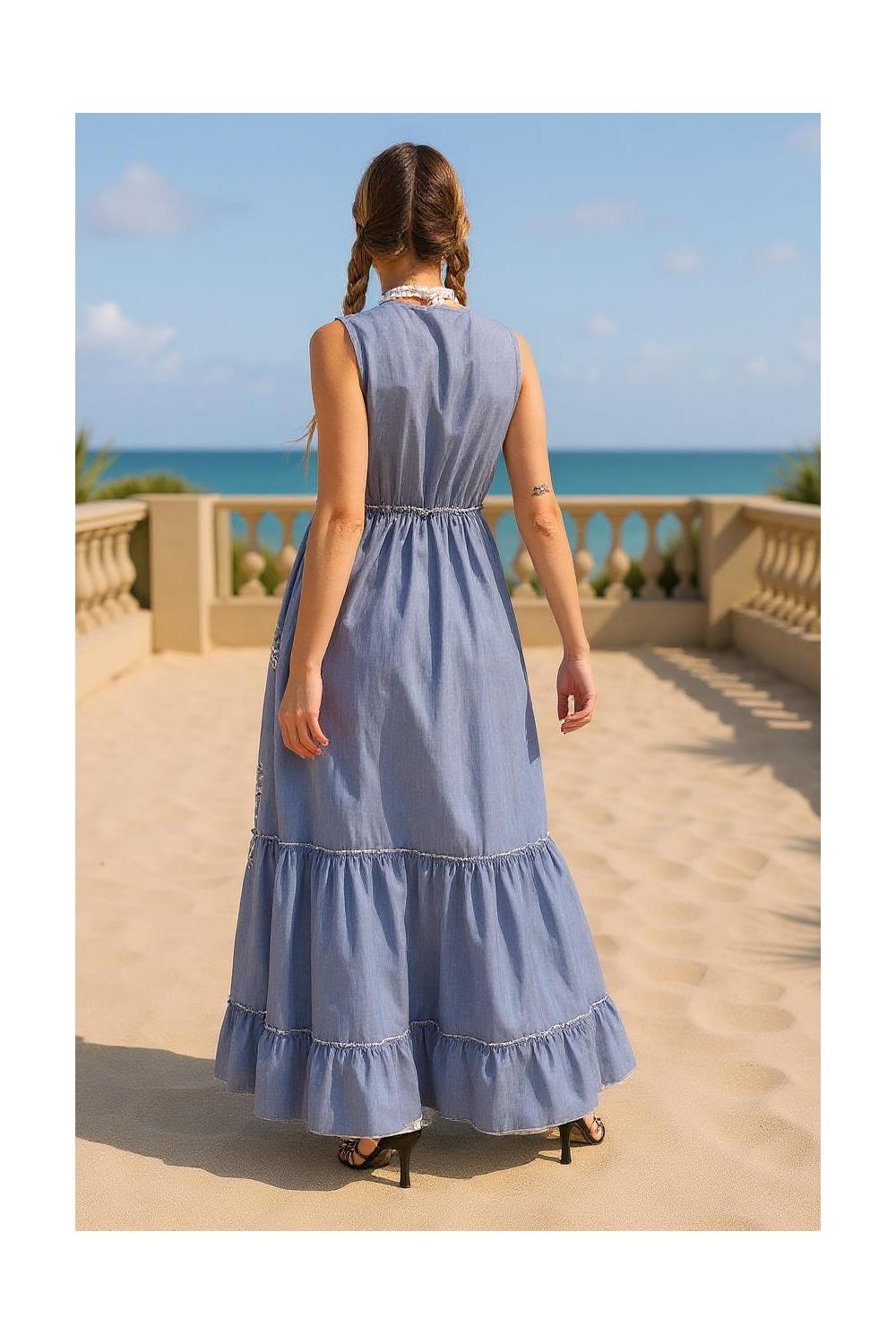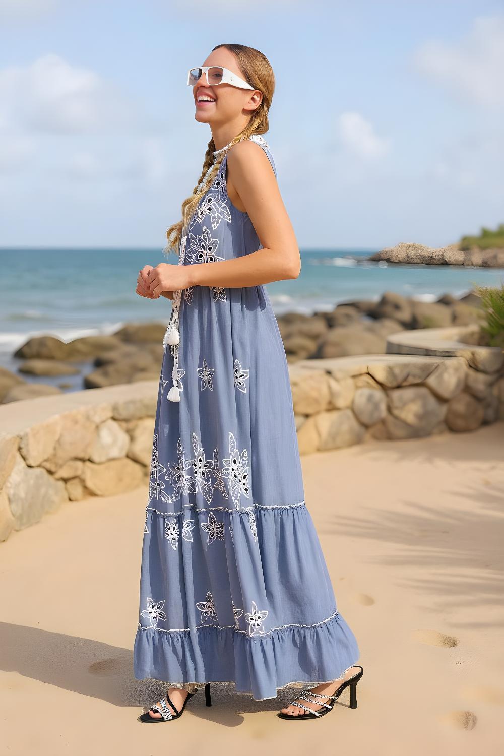 Deze boho kaftan is een uniek kledingstuk dat traditie en moderniteit combineert. Versierd met delicate borduursels, kleine kralenapplicaties en handgestikte pailletten, straalt het een subtiele en heldere charme uit.
