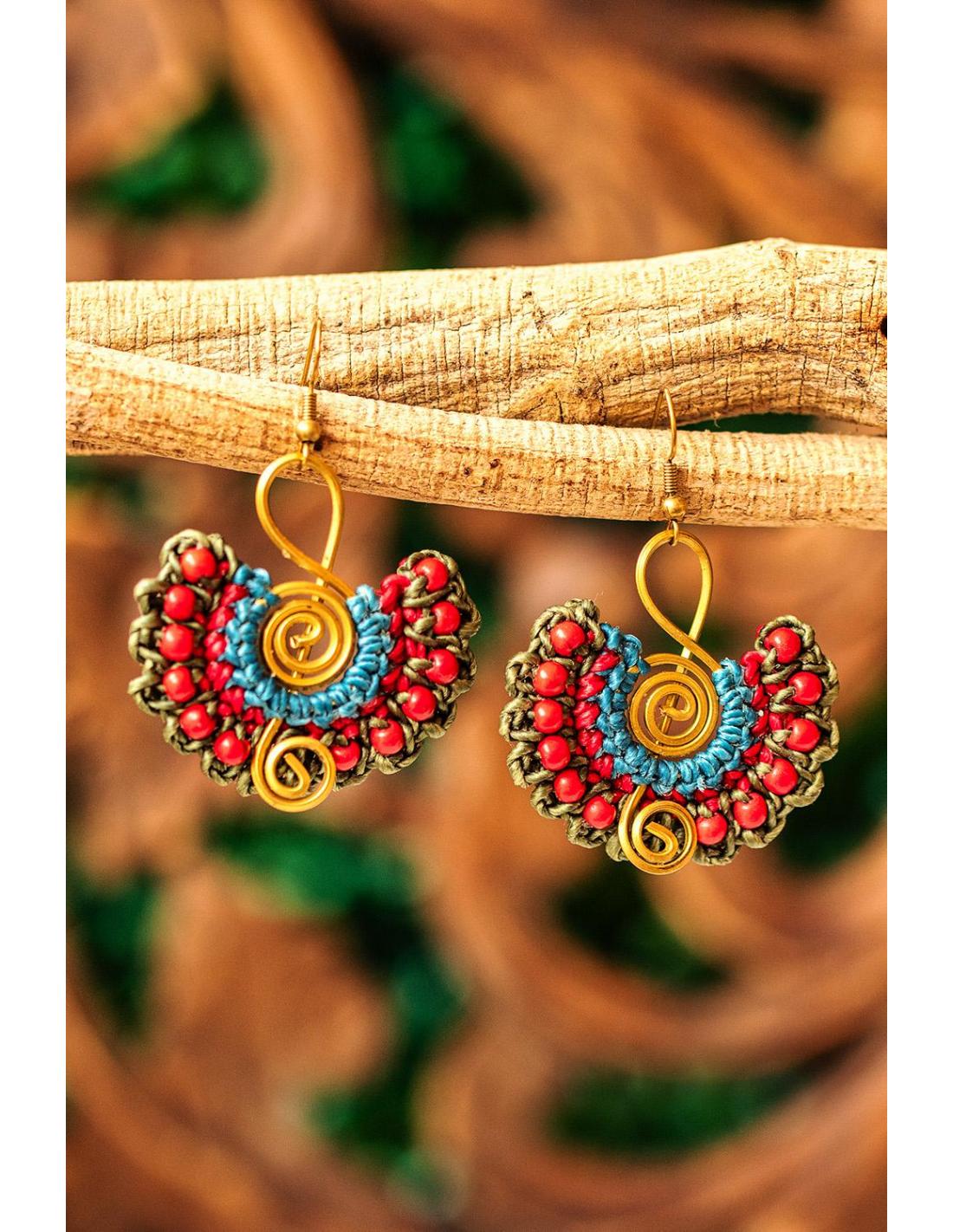 Boheemse hangen in macramese weefsel.Ze dragen de muzikale notatie van de zon in gouden metaal mate.Original en ideaal.Handgemaakt in Bali met liefde.