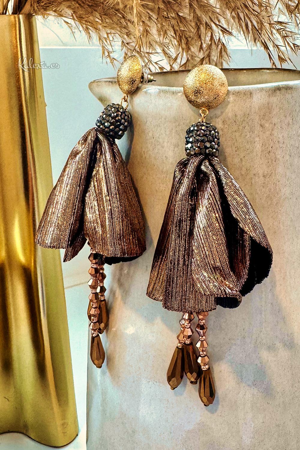 Oorbellen, zeer origineel en elegant, gemaakt van stof, metaal en kralen, met een schroefsluiting. Met liefde met de hand gemaakt: