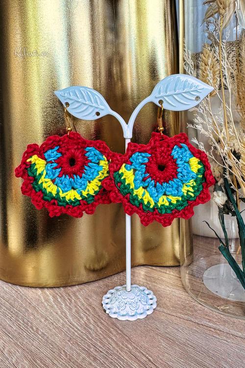Boho-oorbellen van gehaakt katoen met een mix van kleuren, vrolijk en licht, een ideale accessoire om een originele touch aan je dag te geven. Met liefde handgemaakt.