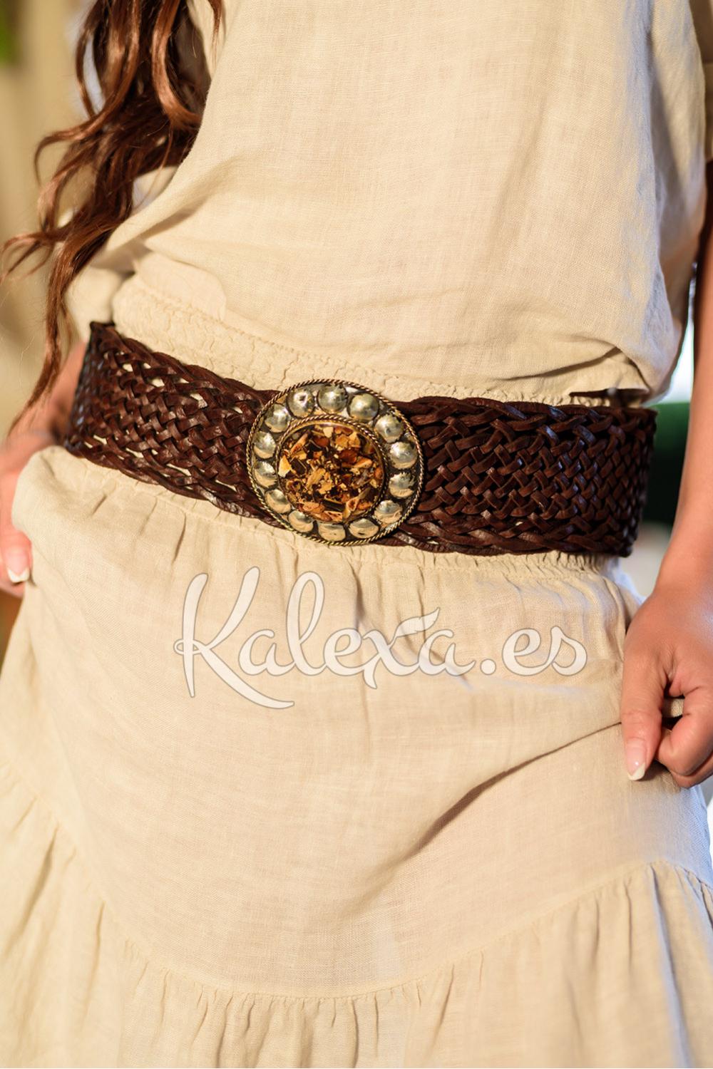 Gevlochten leren handgemaakte bruine riem met verouderde gesp met bruine kunstharsstenen. Ideaal om een bohemien touch aan elke outfit te geven. Dankzij het veelzijdige ontwerp en het verstelsysteem op elk punt van het vlechtwerk, past hij comfortabel om elke maat. Met liefde en met de hand gemaakt van 100% rundleer.