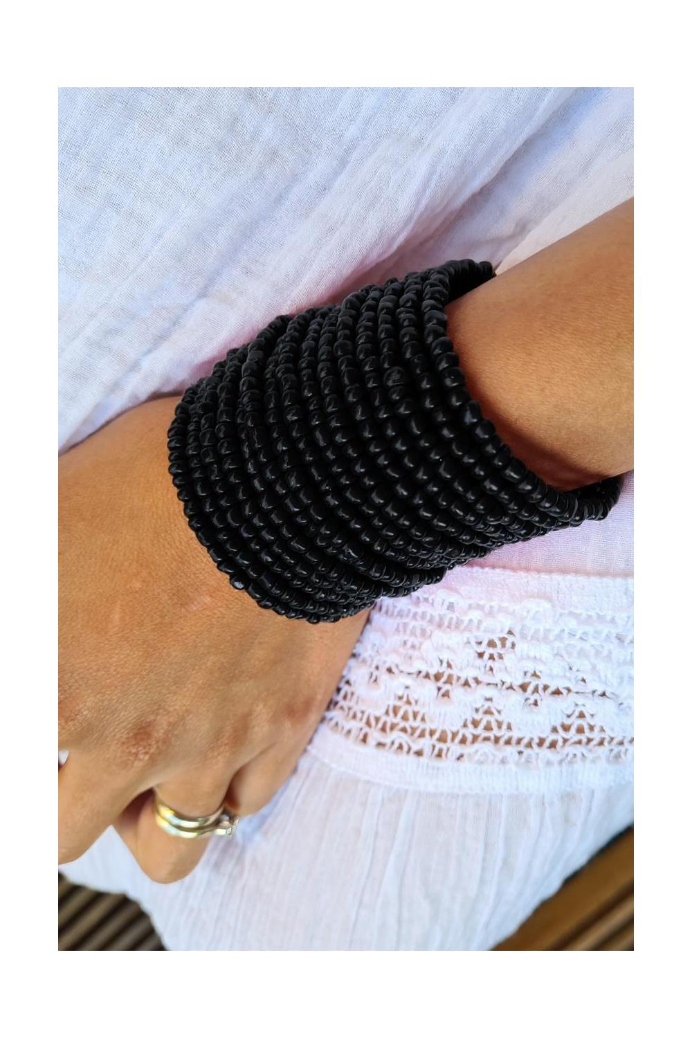 Pulseira de contas em espiral. Feita à mão em Bali e fornecida pela Fairtrade.